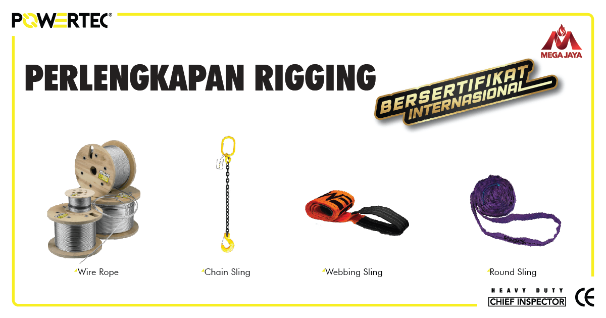 Jika webbing sling, wire rope atau alat rigging lainnya yang Anda miliki membutuhkan penggantian atas kerusakan, maka Anda bisa berkonsultasi dan pilih produk terbaik di Megajaya.co.id. Pastikan Anda mempercayakan brand-brand yang tepat seperti brand powertec yang sudah terbukti untuk jaminan keamanan dan keselamatan para pekerja Anda.
