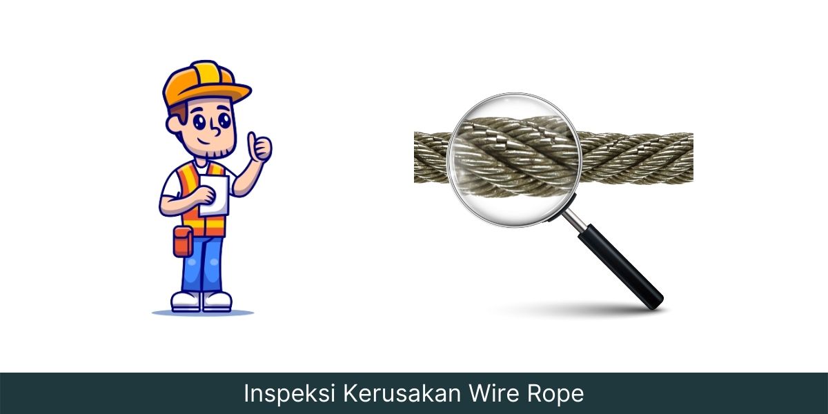 Ada dua inspeksi kerusakan wire rope yang dapat dilakukan, yaitu electromagnetic inspection dan visual inspection. Adapun penjelasan kedua inspeksi kerusakan komponen wire rope, diantaranya :