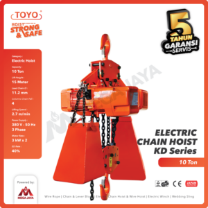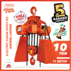 Electric chain hoist merk Toyo yang banyak dicari yaitu dengan daya angkut 3 ton. Harga hoist Toyo 3 ton yang tersedia bervariasi berdasarkan jenis kecepatan yang diperlukan. Terdapat harga hoist Toyo 3 ton untuk jenis electric chain hoist dengan standard type dan harga hoist Toyo 3 ton berbeda untuk jenis electric chain hoist dengan high speed type.