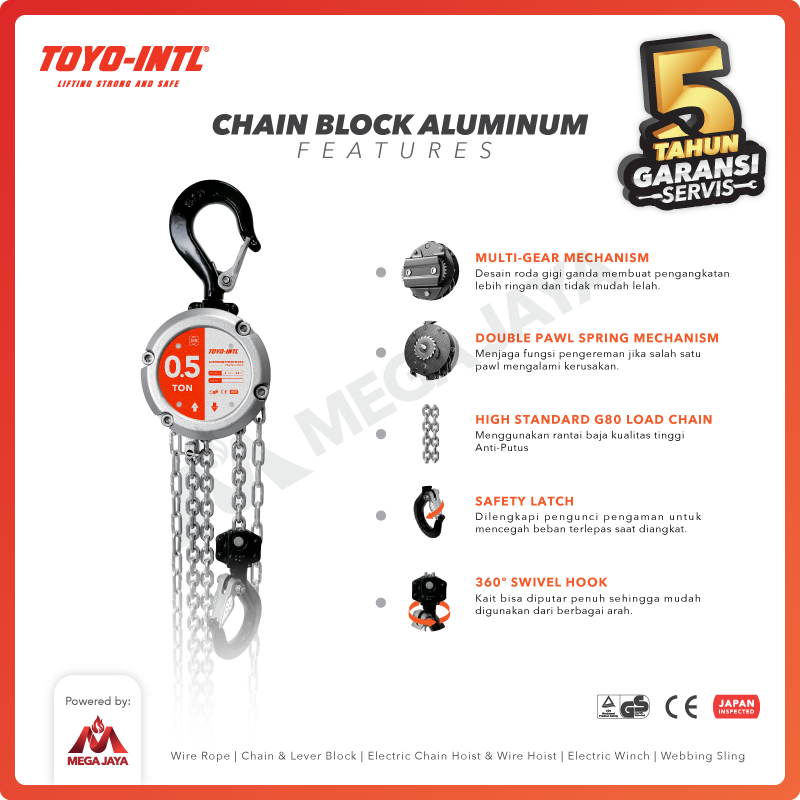 - Distributor Tunggal dan Resmi untuk semua produk Lifting Equipment Toyo