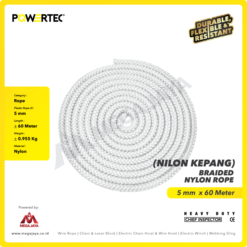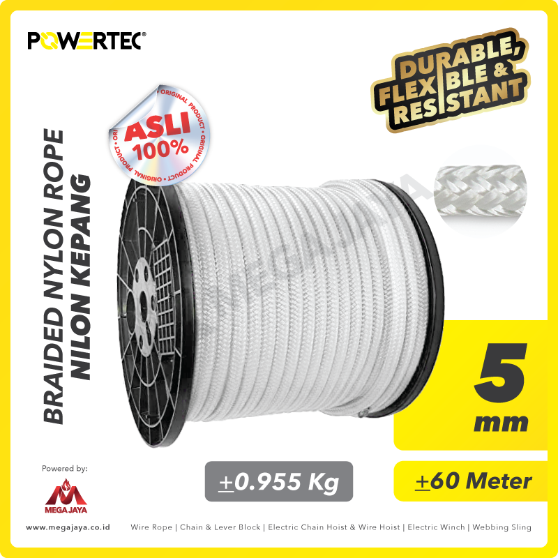 Braided Nylon (Kepang) Powertec 5Milimeter @60 Meter