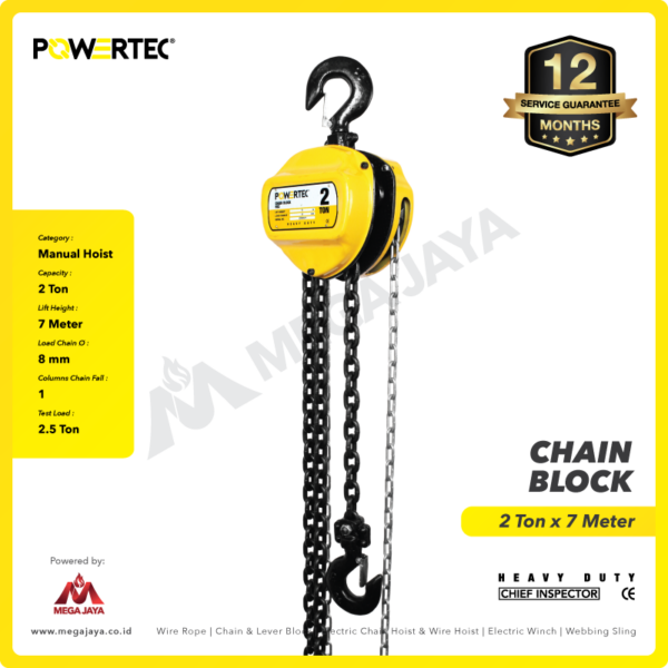 Chain Block Powertec 2 Ton x 7 Meter (8Milimeter)