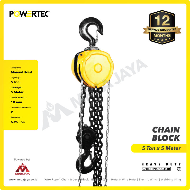 Chain Block Powertec 5 Ton x 5 Meter (10Milimeter)
