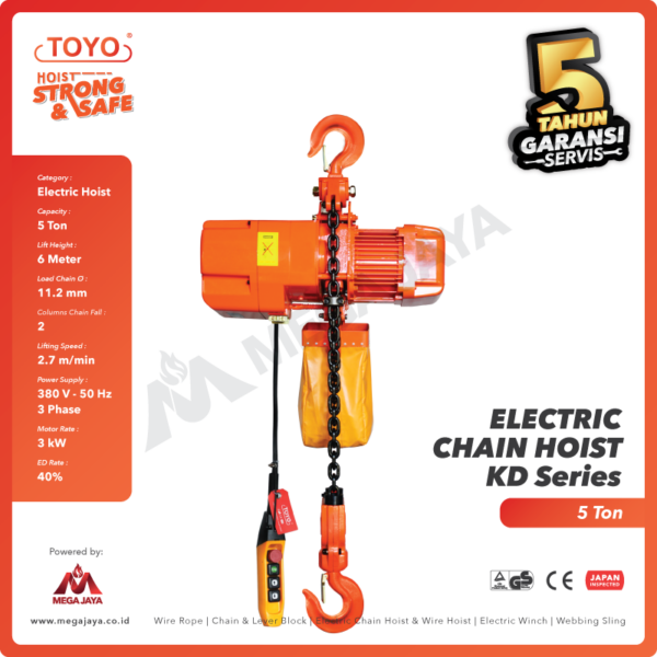 Electric Chain Hoist 3F Toyo KD5-02 5 Ton x 6 Meter (11,2Milimeter)