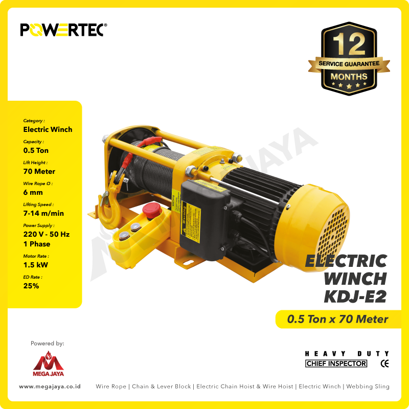 Electric Winch 1F Powertec KDJ-E2 500 Kg x 70 Meter 6Milimeter