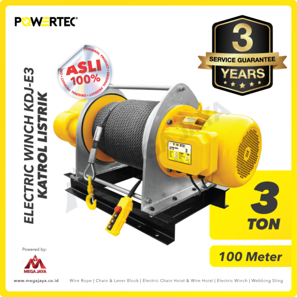 Electric Winch 3F Powertec KDJ-3000E3 3 Ton x 100 Meter 17,5Milimeter