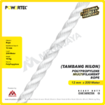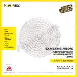 Tali polypropylene adalah tali serbaguna yang cukup populer untuk berbagai kebutuhan. PP Multi Rope Powertec 12mm +- 14Kg memiliki kualitas cukup tinggi dan harga tali nilon 12mm yang cukup terjangkau. Tali ini permukaannya yang halus, mengkilap, beratnya rendah, tahan cuaca, beban tinggi, dan memiliki daya ikatan yang luar biasa.