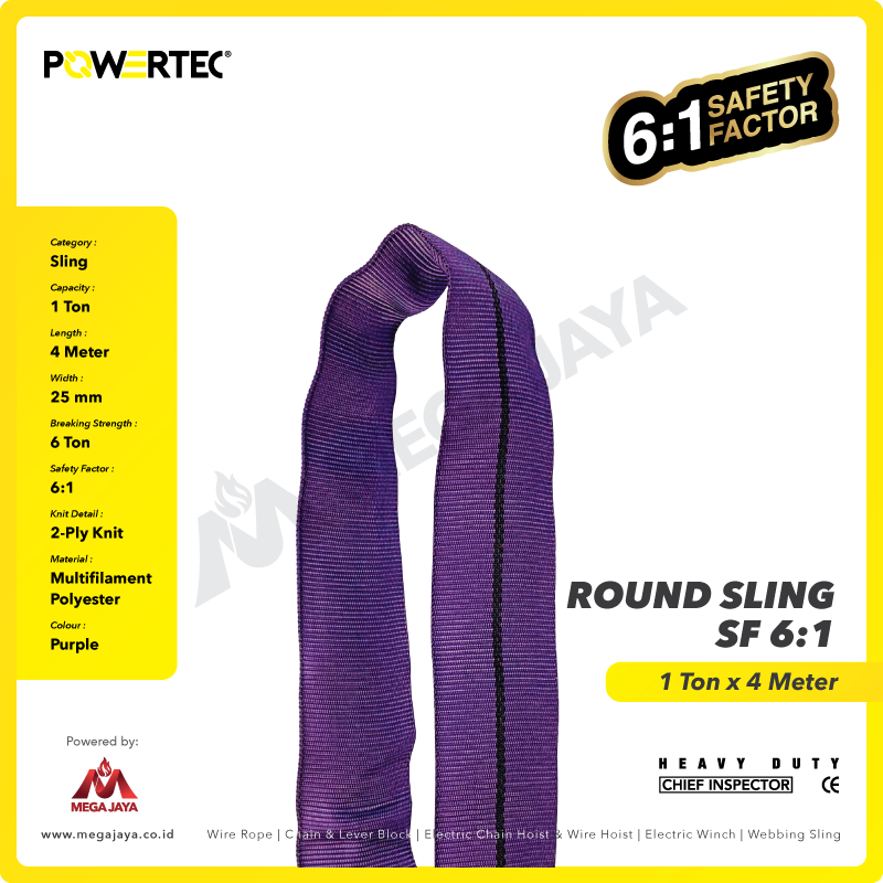 Round Sling Powertec (6:1) 1 Ton x 6 Meter (Ungu)