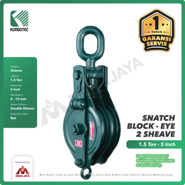 Snatch Block Powertec HD Double Sheave with Shackle 2 Ton – 3″
