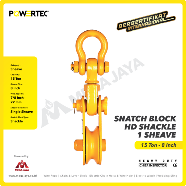 Snatch Block Powertec HD Single Sheave with Shackle 15 Ton – 8″