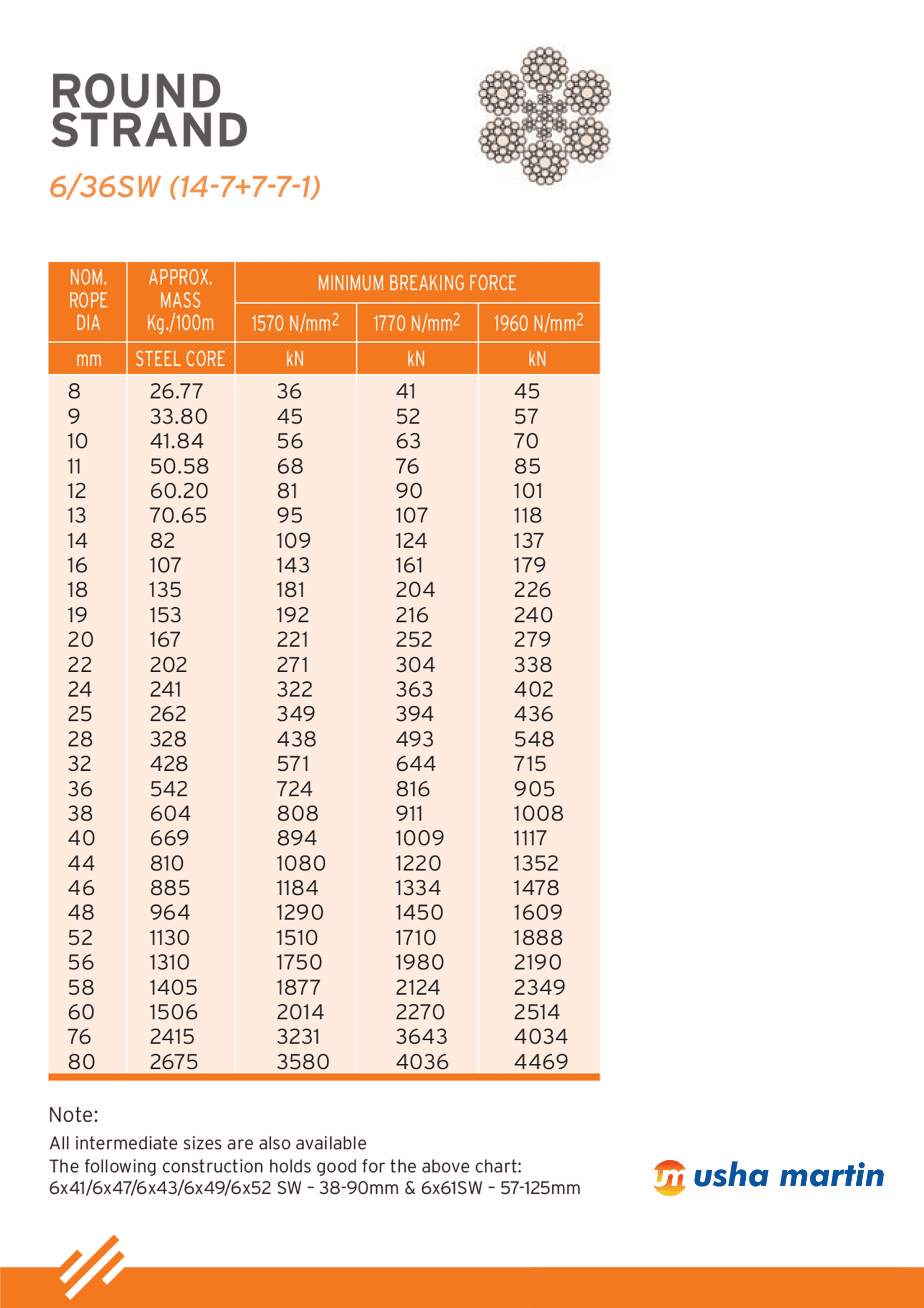 Categories: Wire Rope, Wire Rope 6x36 IWRC Galv, Wire Rope 6x36 IWRC Galv Usha Martin